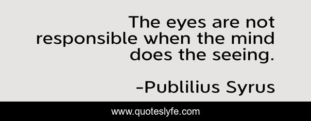 This page presents the quote "The eyes are not responsible when the mind does the seeing.". Author of this quote is Publilius Syrus. .