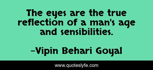 This page presents the quote "The eyes are the true reflection of a man's age and sensibilities.". Author of this quote is Vipin Behari Goyal. This quote is about enthusiasm, eyes, inspirational,.