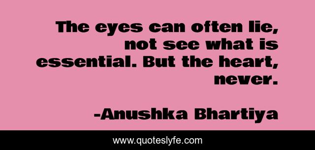 This page presents the quote "The eyes can often lie, not see what is essential. But the heart, never.". Author of this quote is Anushka Bhartiya. This quote is about heart, eyes,.