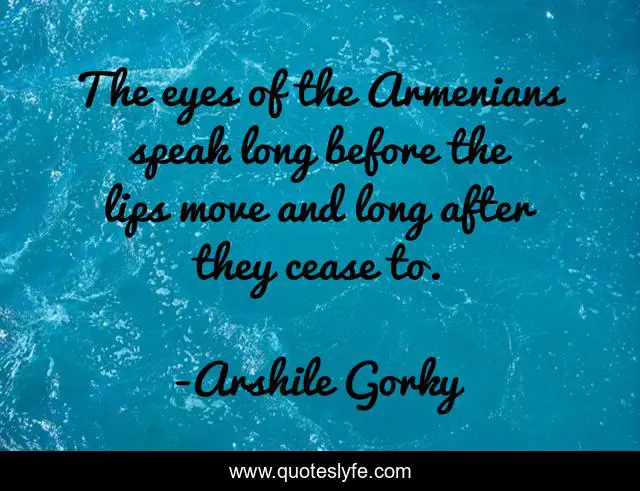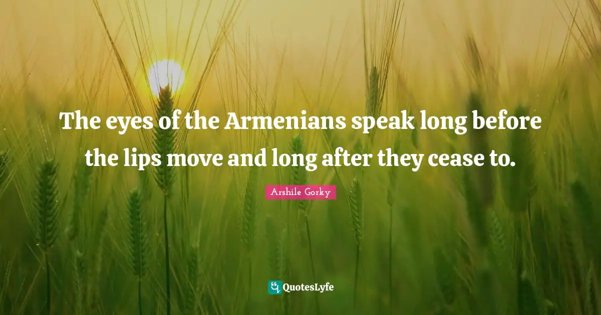 This page presents the quote "The eyes of the Armenians speak long before the lips move and long after they cease to.". Author of this quote is Arshile Gorky. This quote is about armenians, eyes, sadness, armenian, wisdom,.