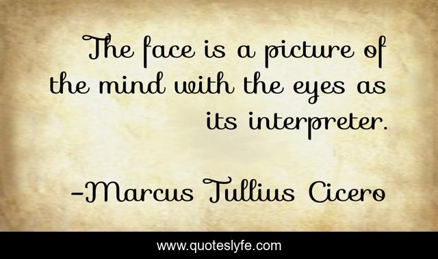 This page presents the quote "The face is a picture of the mind with the eyes as its interpreter.". Author of this quote is Marcus Tullius Cicero. This quote is about interpreter, eyes, face, mind, picture,.