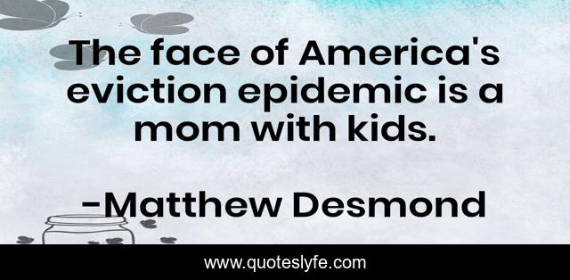 This page presents the quote "The face of America's eviction epidemic is a mom with kids.". Author of this quote is Matthew Desmond. This quote is about face, america, kids,.