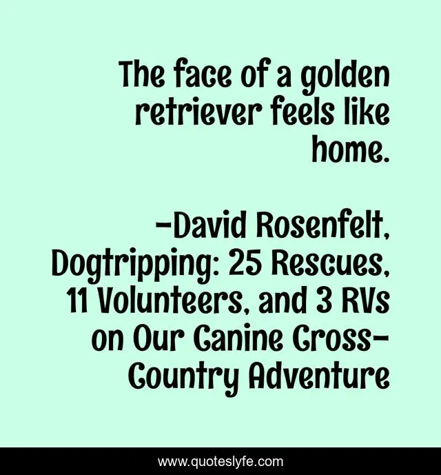 This page presents the quote "The face of a golden retriever feels like home.". Author of this quote is David Rosenfelt, Dogtripping: 25 Rescues, 11 Volunteers, and 3 RVs on Our Canine Cross-Country Adventure. This quote is about golden-retrievers, dogs,.