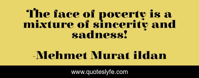 This page presents the quote "The face of poverty is a mixture of sincerity and sadness!". Author of this quote is Mehmet Murat ildan. This quote is about poor, mixture, mehmet-murat-ildan, ildan-wise-sayings, turkish, ildan-wisdom, turkish-playwrights, face, turkish-wisdom-words,.