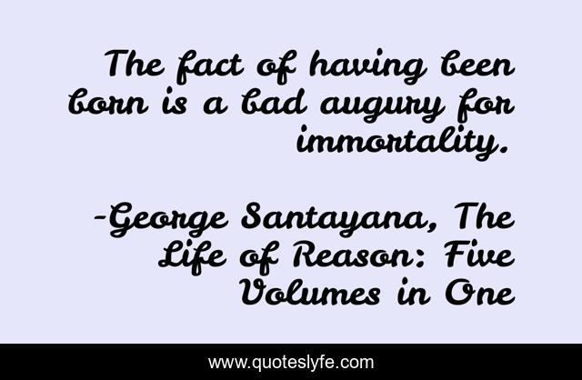 This page presents the quote "The fact of having been born is a bad augury for immortality.". Author of this quote is George Santayana, The Life of Reason: Five Volumes in One. This quote is about immortality, death, birth,.