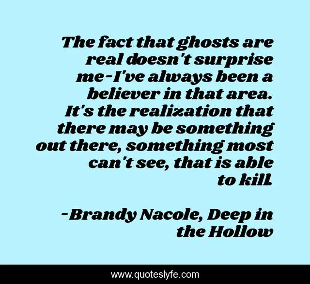 "Brandy Nacole, Deep in the Hollow Quotes." Quoteslyfe.com, 2025. Fri. 05 Dec. 2025. <https://www.quoteslyfe.com/quote/The-fact-that-ghosts-are-real-doesn-183880>.