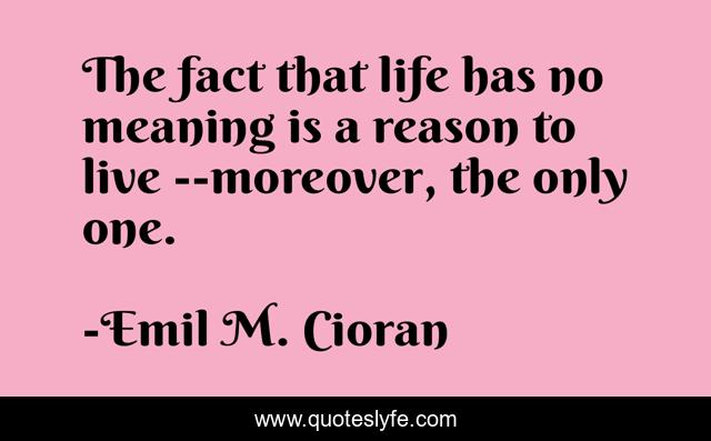 This page presents the quote "The fact that life has no meaning is a reason to live --moreover, the only one.". Author of this quote is Emil M. Cioran. This quote is about thinking, existence, life, death, reason,.