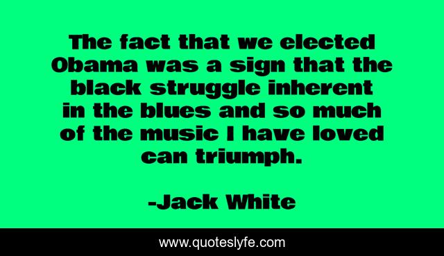 This page presents the quote "The fact that we elected Obama was a sign that the black struggle inherent in the blues and so much of the music I have loved can triumph.". Author of this quote is Jack White. This quote is about blues, black, struggle,.