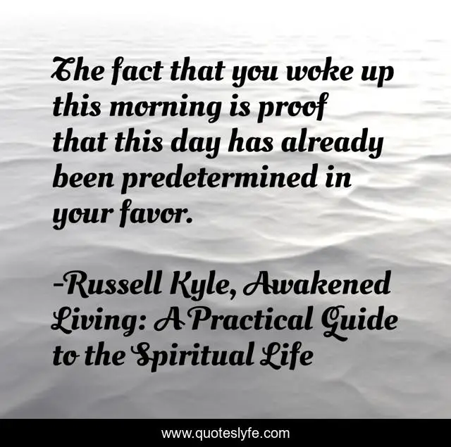 This page presents the quote "The fact that you woke up this morning is proof that this day has already been predetermined in your favor.". Author of this quote is Russell Kyle, Awakened Living: A Practical Guide to the Spiritual Life. This quote is about gratitude, spiritual, morning, new-age,.