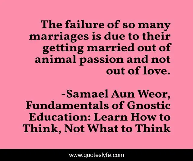 "Samael Aun Weor, Fundamentals of Gnostic Education: Learn How to Think, Not What to Think Quotes." Quoteslyfe.com, 2025. Fri. 05 Dec. 2025. <https://www.quoteslyfe.com/quote/The-failure-of-so-many-marriages-is-76835>.