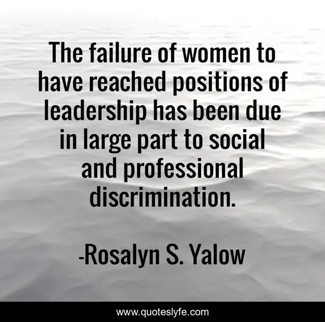 This page presents the quote "The failure of women to have reached positions of leadership has been due in large part to social and professional discrimination.". Author of this quote is Rosalyn S. Yalow. This quote is about leadership, women,.