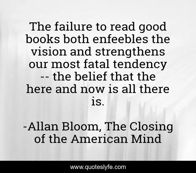 "Allan Bloom, The Closing of the American Mind Quotes." Quoteslyfe.com, 2025. Fri. 05 Dec. 2025. <https://www.quoteslyfe.com/quote/The-failure-to-read-good-books-both-42804>.