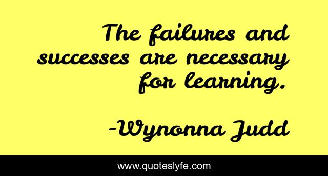 This page presents the quote "The failures and successes are necessary for learning.". Author of this quote is Wynonna Judd. This quote is about successes, necessary,.