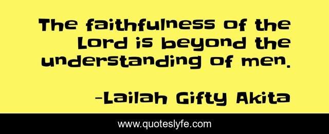 This page presents the quote "The faithfulness of the Lord is beyond the understanding of men.". Author of this quote is Lailah Gifty Akita. This quote is about faith, spiritual, faithfulness, faithful, faith-inspirational, god-s-plan, god-s-will, faith-strength, wisdom,.