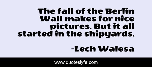 This page presents the quote "The fall of the Berlin Wall makes for nice pictures. But it all started in the shipyards.". Author of this quote is Lech Walesa. This quote is about berlin, fall, nice,.