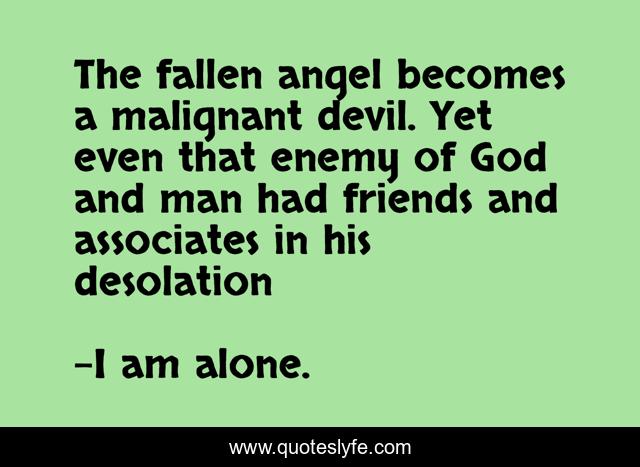 "I am alone. Quotes." Quoteslyfe.com, 2025. Sat. 06 Dec. 2025. <https://www.quoteslyfe.com/quote/The-fallen-angel-becomes-a-malignant-devil-4871>.