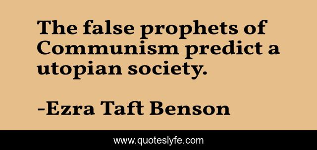 This page presents the quote "The false prophets of Communism predict a utopian society.". Author of this quote is Ezra Taft Benson. This quote is about predict, communism, false,.