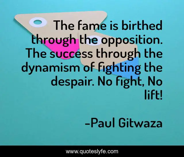 This page presents the quote "The fame is birthed through the opposition. The success through the dynamism of fighting the despair. No fight, No lift!". Author of this quote is Paul Gitwaza. This quote is about success, fight, lift, dynamism, birth, inspiration,.