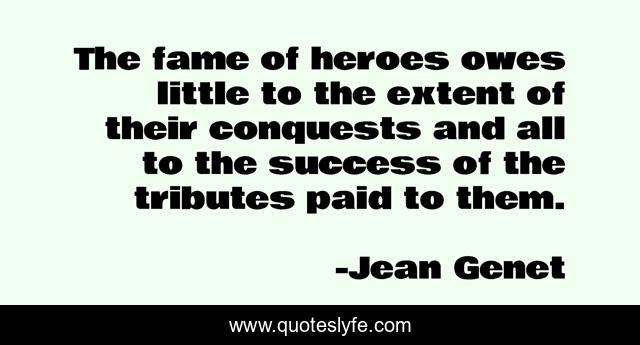 This page presents the quote "The fame of heroes owes little to the extent of their conquests and all to the success of the tributes paid to them.". Author of this quote is Jean Genet. This quote is about heroes, little, fame,.