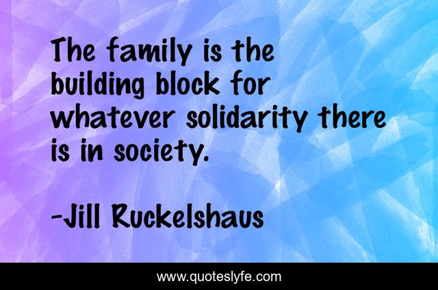 This page presents the quote "The family is the building block for whatever solidarity there is in society.". Author of this quote is Jill Ruckelshaus. .