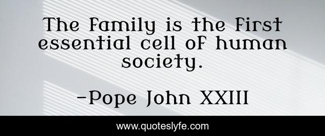 This page presents the quote "The family is the first essential cell of human society.". Author of this quote is Pope John XXIII. This quote is about society, human, first,.