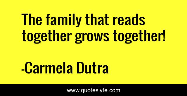 This page presents the quote "The family that reads together grows together!". Author of this quote is Carmela Dutra. This quote is about family, bonding, learning, growing, reading, loving,.