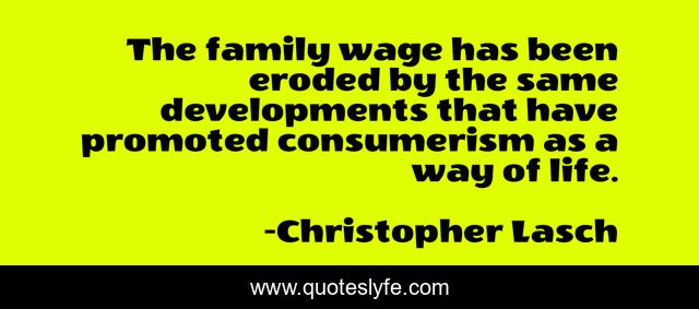 This page presents the quote "The family wage has been eroded by the same developments that have promoted consumerism as a way of life.". Author of this quote is Christopher Lasch. This quote is about life, way, same,.