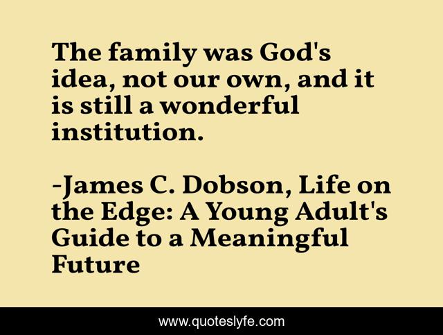 "James C. Dobson, Life on the Edge: A Young Adult's Guide to a Meaningful Future Quotes." Quoteslyfe.com, 2025. Mon. 08 Dec. 2025. <https://www.quoteslyfe.com/quote/The-family-was-God-s-idea-not-86168>.