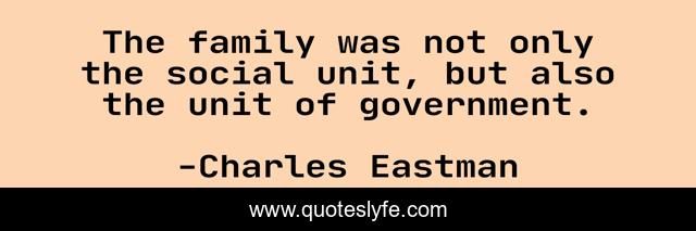 This page presents the quote "The family was not only the social unit, but also the unit of government.". Author of this quote is Charles Eastman. This quote is about only, government, social,.