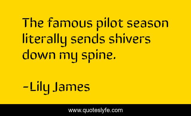 This page presents the quote "The famous pilot season literally sends shivers down my spine.". Author of this quote is Lily James. This quote is about down, season, pilot,.