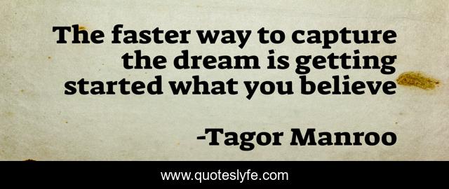 This page presents the quote "The faster way to capture the dream is getting started what you believe". Author of this quote is Tagor Manroo. This quote is about faith, life, inspirational, enthusiasm, believe, dream, spirit,.