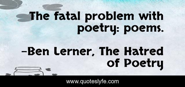 "Ben Lerner, The Hatred of Poetry Quotes." Quoteslyfe.com, 2025. Fri. 05 Dec. 2025. <https://www.quoteslyfe.com/quote/The-fatal-problem-with-poetry-poems-204553>.