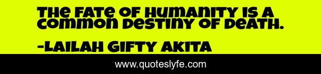 This page presents the quote "The fate of humanity is a common destiny of death.". Author of this quote is Lailah Gifty Akita. This quote is about death, destiny, fate, hunsn-beings, wisdom, hunanity,.
