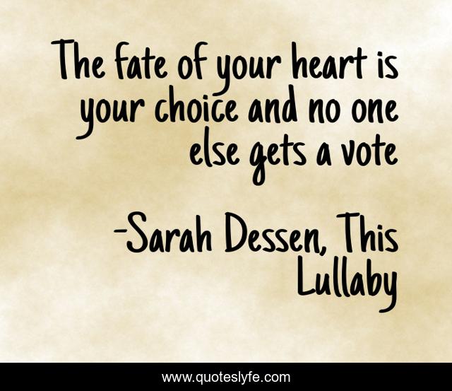 "Sarah Dessen, This Lullaby Quotes." Quoteslyfe.com, 2025. Mon. 08 Dec. 2025. <https://www.quoteslyfe.com/quote/The-fate-of-your-heart-is-your-306>.