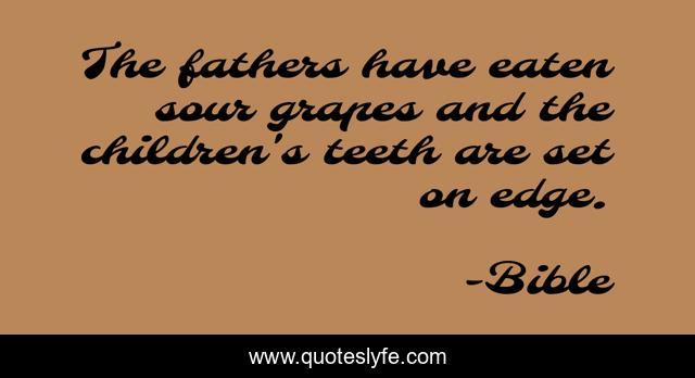 This page presents the quote "The fathers have eaten sour grapes and the children's teeth are set on edge.". Author of this quote is Bible. .