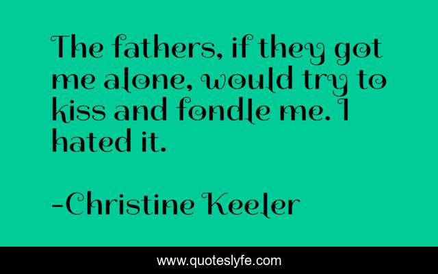 This page presents the quote "The fathers, if they got me alone, would try to kiss and fondle me. I hated it.". Author of this quote is Christine Keeler. This quote is about me, try, kiss,.