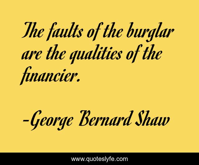 This page presents the quote "The faults of the burglar are the qualities of the financier.". Author of this quote is George Bernard Shaw. This quote is about punishment, crime,.