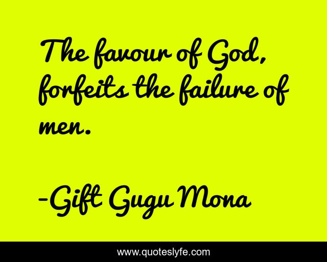 This page presents the quote "The favour of God, forfeits the failure of men.". Author of this quote is Gift Gugu Mona. This quote is about failure, men, forfeits, favour,.