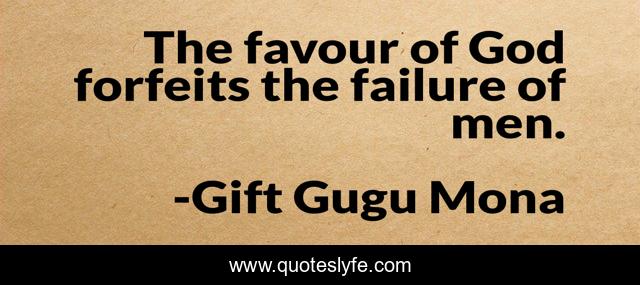 This page presents the quote "The favour of God forfeits the failure of men.". Author of this quote is Gift Gugu Mona. This quote is about failure, men, favour, god,.