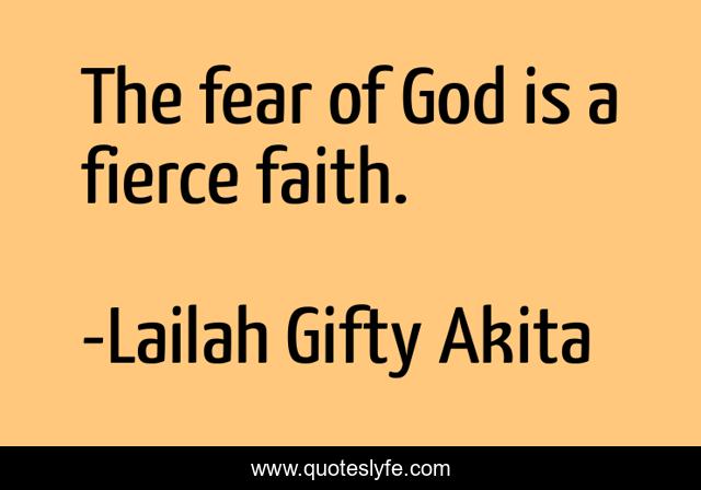 This page presents the quote "The fear of God is a fierce faith.". Author of this quote is Lailah Gifty Akita. This quote is about faith, christian, religion, inspirational, fear-god, enthusiasm,.