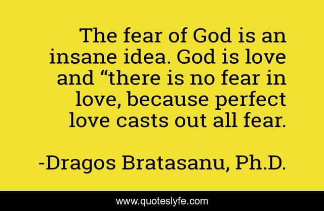 This page presents the quote "The fear of God is an insane idea. God is love and “there is no fear in love, because perfect love casts out all fear.". Author of this quote is Dragos Bratasanu, Ph.D.. This quote is about true-love, faith, love, god, spirituality, fear, affection, no-fear,.