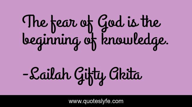 This page presents the quote "The fear of God is the beginning of knowledge.". Author of this quote is Lailah Gifty Akita. This quote is about christian, knowledge, god, self-realization, learning, fear, scholars,.