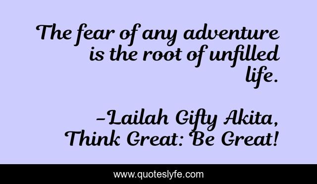 "Lailah Gifty Akita, Think Great: Be Great! Quotes." Quoteslyfe.com, 2025. Sat. 06 Dec. 2025. <https://www.quoteslyfe.com/quote/The-fear-of-any-adventure-is-the-97253>.