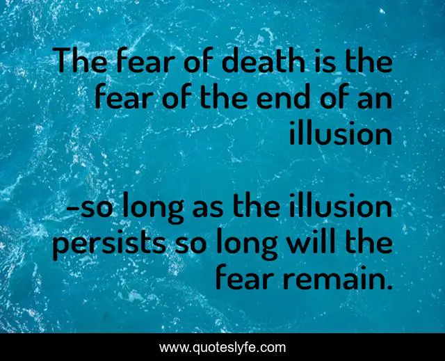 "so long as the illusion persists so long will the fear remain. Quotes." Quoteslyfe.com, 2025. Fri. 05 Dec. 2025. <https://www.quoteslyfe.com/quote/The-fear-of-death-is-the-fear-195142>.