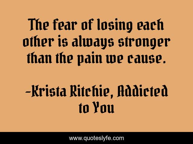 This page presents the quote "The fear of losing each other is always stronger than the pain we cause.". Author of this quote is Krista Ritchie, Addicted to You. This quote is about love, fear, loose, pain, affection,.
