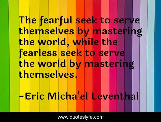 "Eric Micha'el Leventhal Quotes." Quoteslyfe.com, 2025. Fri. 05 Dec. 2025. <https://www.quoteslyfe.com/quote/The-fearful-seek-to-serve-themselves-by-135400>.