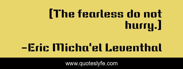 "Eric Micha'el Leventhal Quotes." Quoteslyfe.com, 2025. Sat. 06 Dec. 2025. <https://www.quoteslyfe.com/quote/The-fearless-do-not-hurry-160526>.