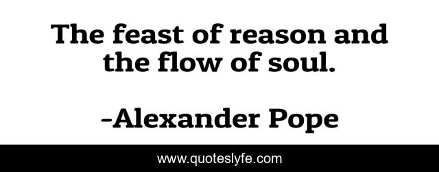 This page presents the quote "The feast of reason and the flow of soul.". Author of this quote is Alexander Pope. .