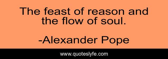 This page presents the quote "The feast of reason and the flow of soul.". Author of this quote is Alexander Pope. .