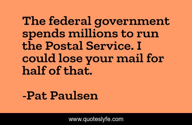 This page presents the quote "The federal government spends millions to run the Postal Service. I could lose your mail for half of that.". Author of this quote is Pat Paulsen. This quote is about run, service, lose,.